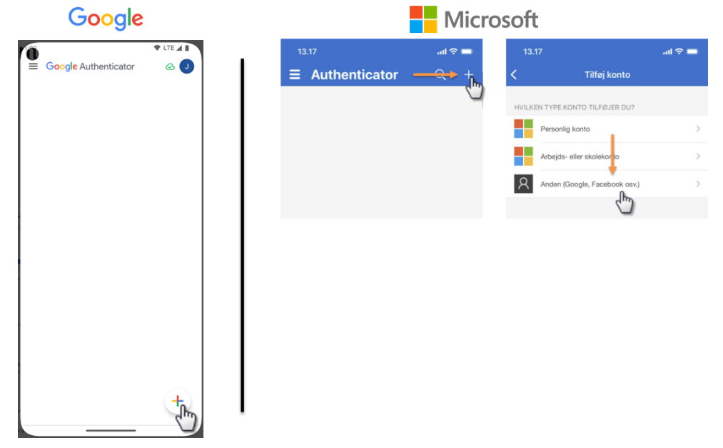 Åbn appen til 2FA (Google eller Microsoft365) og tilføj en ny konto af typen "Anden" (her skal du bruge den QR-kode der vises på skærmen). Så snart koden er scannet, vil der være tilføjet en ny konto i appen.